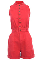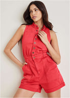 Utility has never looked as chic as it does in this twill romper. We paid extra-special attention to the fit so that the functional details don't overpower the feminine elements, like a figure-flattering defined waistband. Cuffed hems on the shorts add a polished twist so you can absolutely dress this piece up with heeled sandals. * Sleeveless * Button front * Patch pockets * Cuffed hems * 3.5" inseam * Cotton/polyester/spandex. Imported