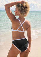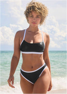 Sporty, sleek, and made to stand out. This liquid leather bikini top brings an edgy twist to classic swimwear with its luxe, ultra-smooth fabric and supportive cross-back design. Removable cups let you customize your fit, while over-the-shoulder straps keep everything in place—whether you're lounging poolside or catching waves. Amp up the sporty vibe by pairing it with the Liquid Leather Honolulu Bottoms or the Liquid Leather Fiji Bottoms for a look that's equal parts fierce and functional.