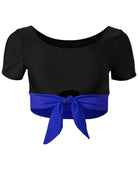 Tie-Front Short Sleeve Top - Cobalt & Black