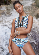 Lorelai High-Neck Zip Top - Calypso Bloom