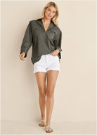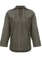 V-Neck Oversized Shirt - Olive
