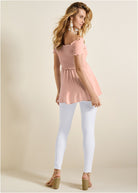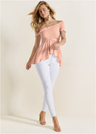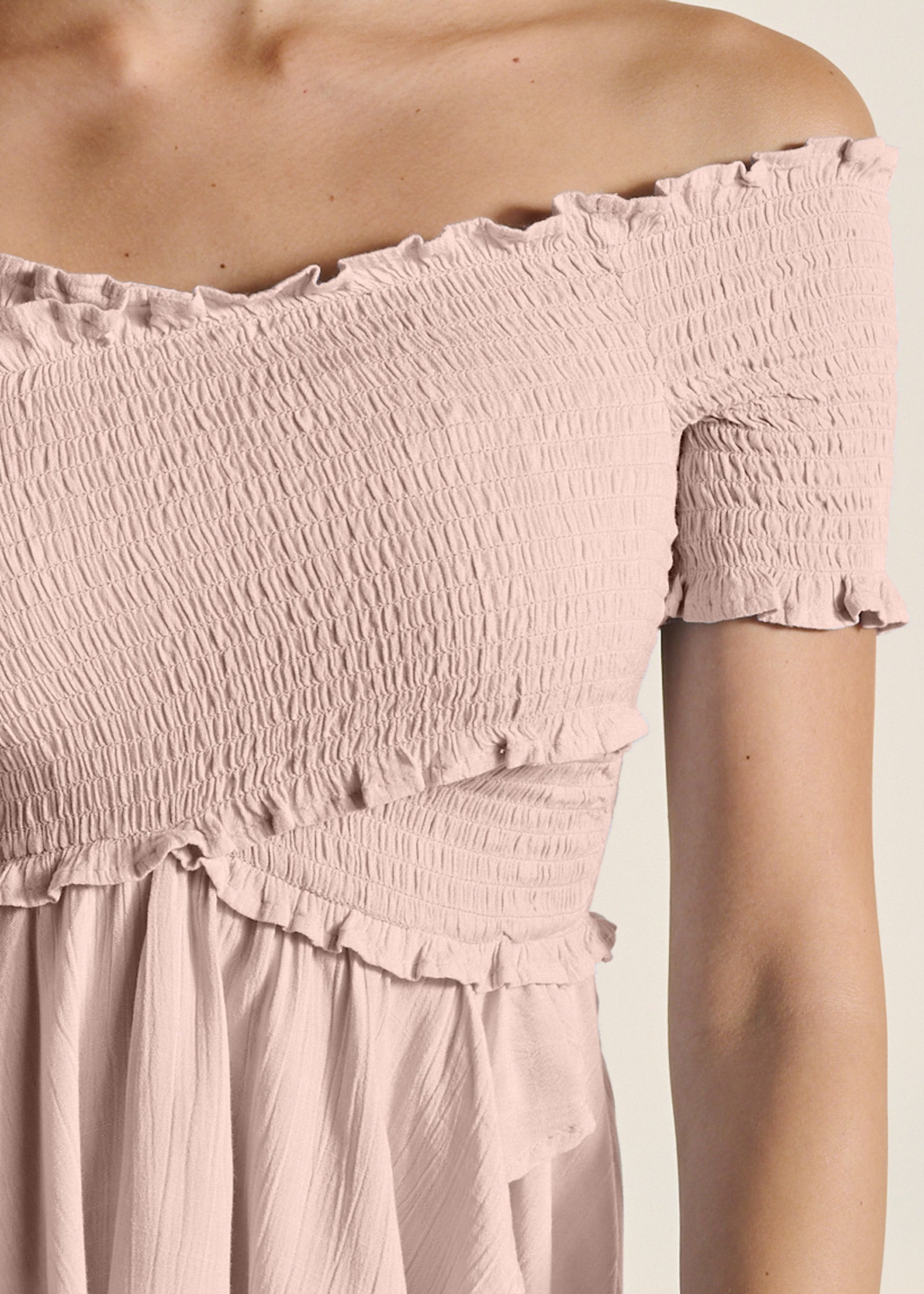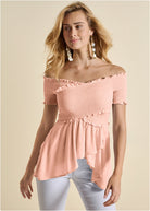 Elegant and timeless, this Smocked Babydoll Top is elevated without being overstated. Slip on this top with your favorite jeans and a pair of heels for an outfit ready for anything. With its off-the-shoulder neckline, fitted smocked top and flowy bottom you'll have an ethereal feeling as soon as you slip it on.