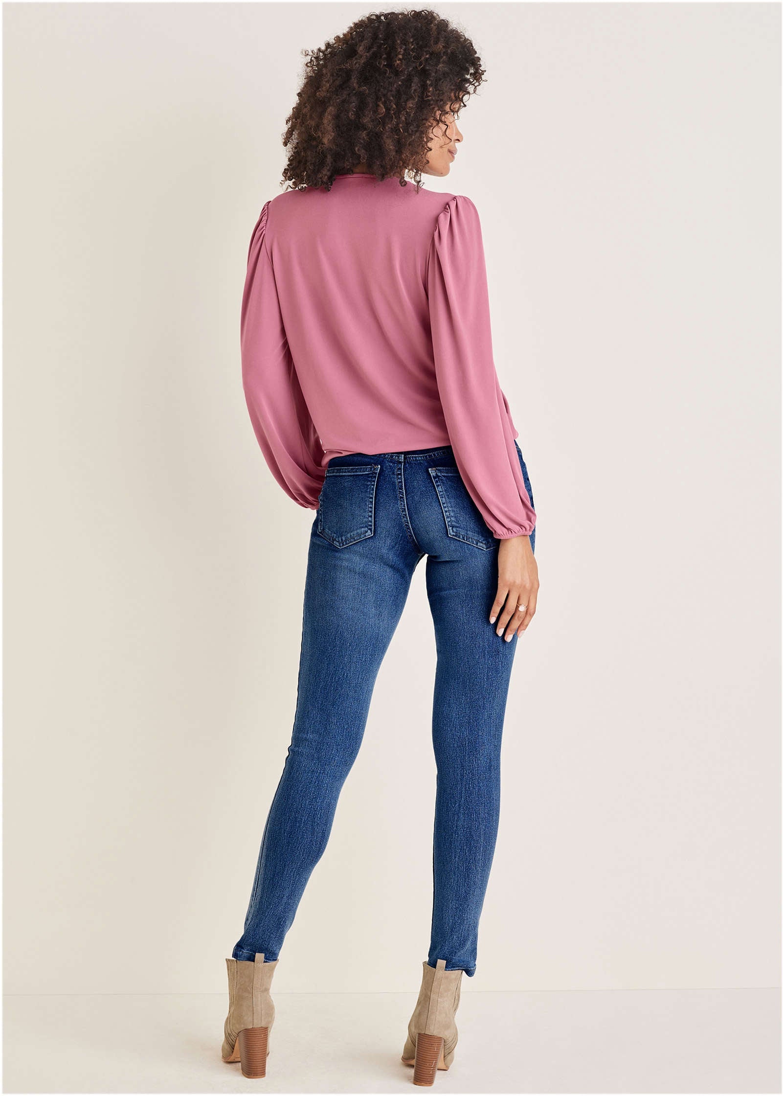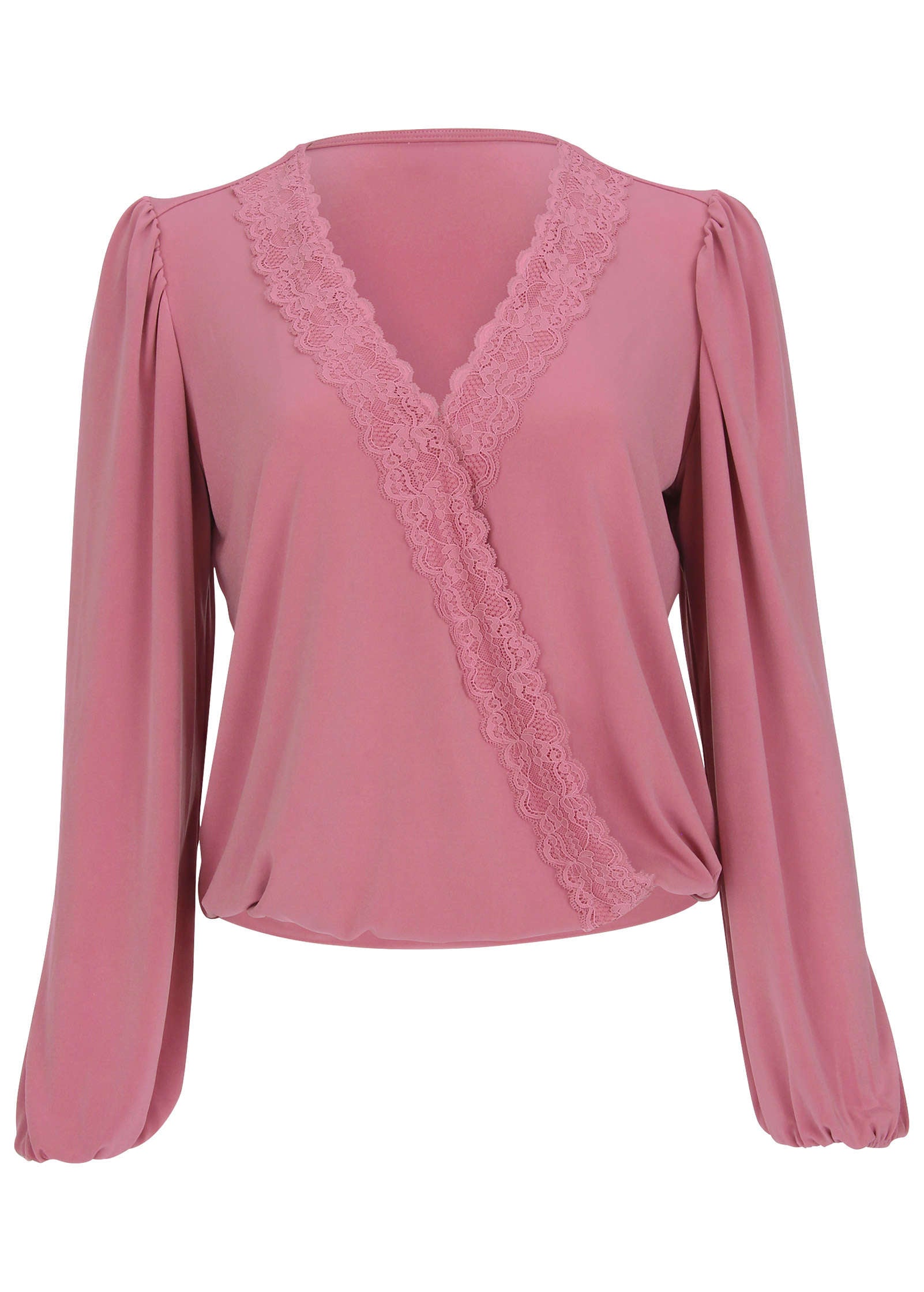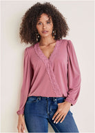 Faux Wrap Lace Trim Blouse - Heather Rose