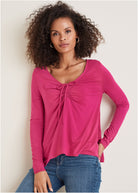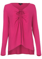This flattering go-to blouse features an adjustable ruched front that adds volume where you want it. Crafted with soft flowy fabric and side slit details, it effortlessly drapes over your silhouette for a relaxed, yet chic look. The high-low front and back can be adjusted to fit your look perfectly!