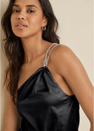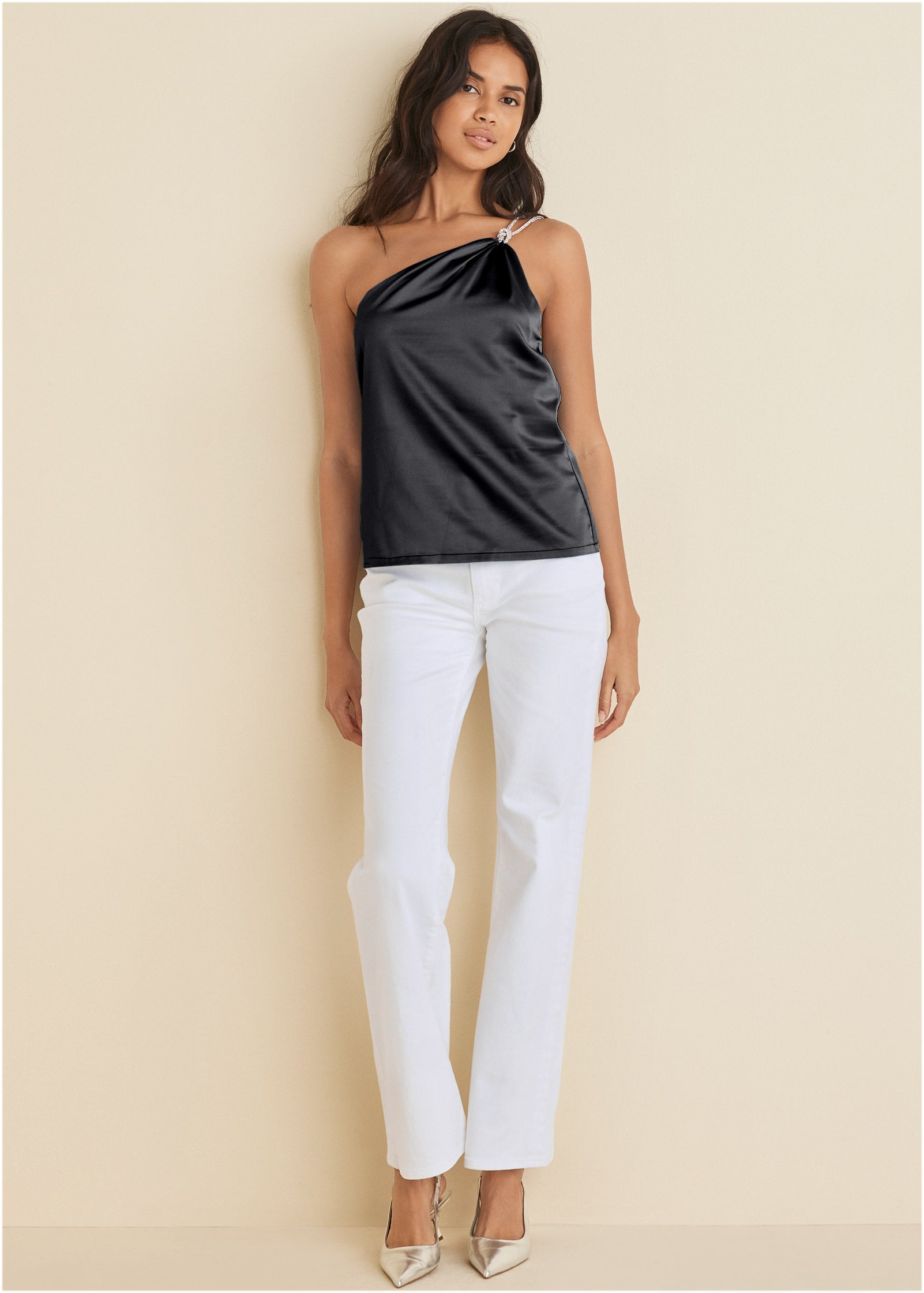 Get ready to shine all night long. The Shimmer One-Shoulder Top is your go-to party piece, featuring a sleek one-shoulder design and shimmering straps that catch the light with every move. This tank is the perfect blend of chic and sultry—ideal for a night out, a special event, or any occasion where you want to make an entrance. Pair it with pants or a matching skirt for a show-stopping look that’s guaranteed to turn heads. * One-shoulder design: Sexy, sophisticated, and totally on-trend * Shimmer straps: Adds a touch of sparkle and glam * Perfect for parties: Pair with pants or a matching skirt for a full-on glam look * Poly/spandex. Imported