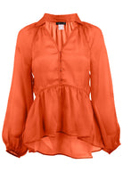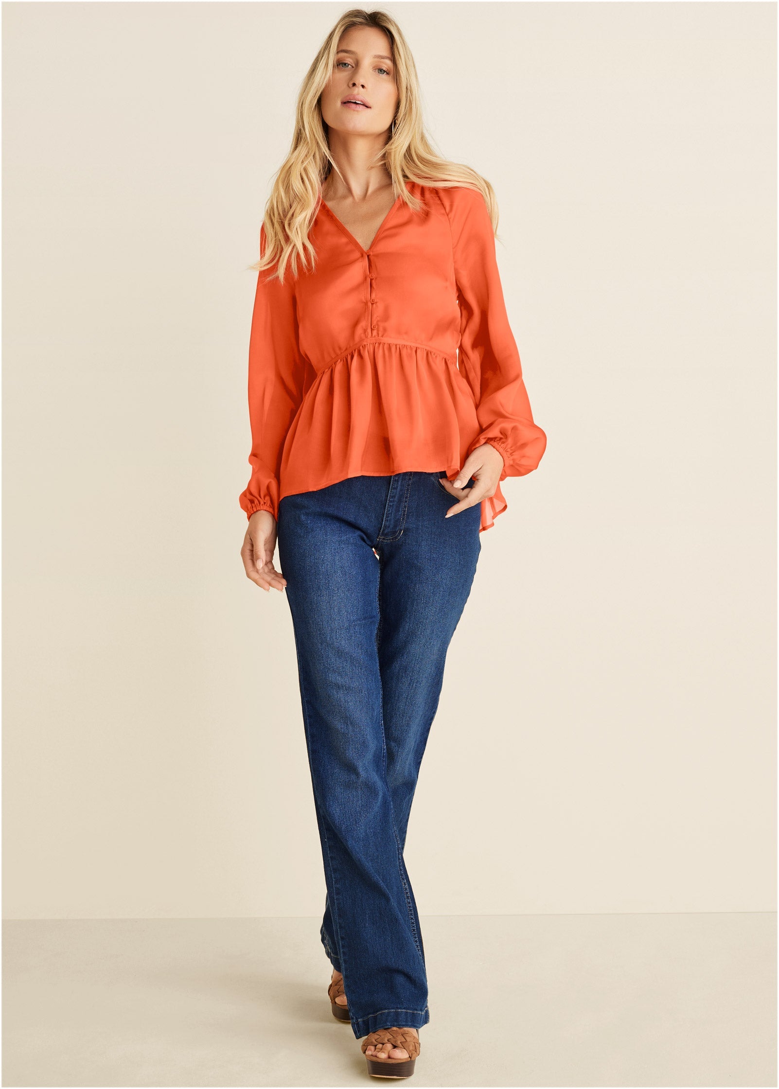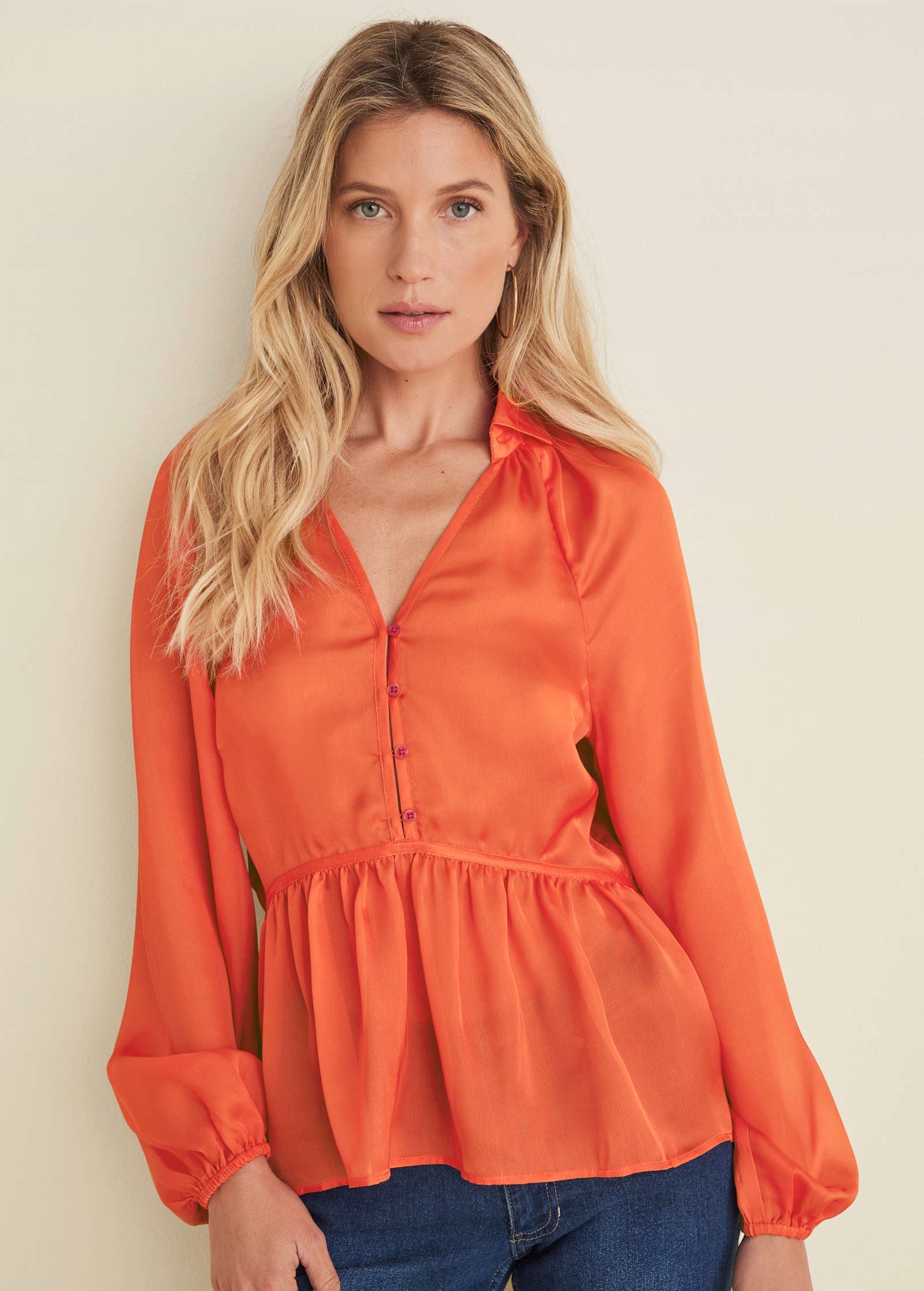 Done in lightweight chiffon, this romantic blouse drapes beautifully. The fitted middle plays up your waist, while the ruffle hem creates the look of an hourglass figure. To soften the crisp collar, we added floaty balloon sleeves. From the office to date night to weekend brunch, this is one of those tops that can do it all. * Runs small; size up for a better fit * Available in plus sizes * 22" approx. length; varies by size * Collared neckline * Long sleeves * Button closure * Fabric does not have stretch * Poly. Imported