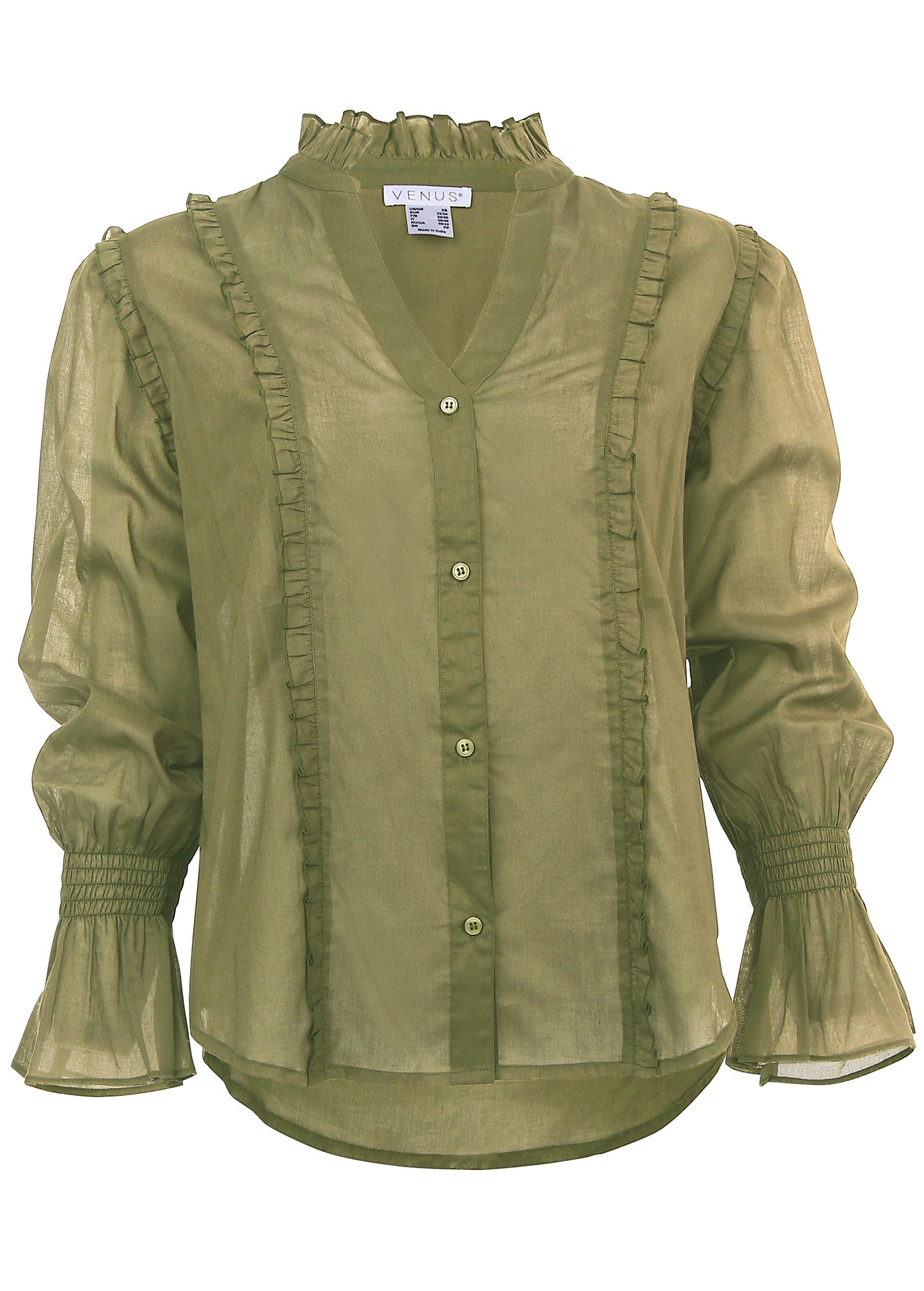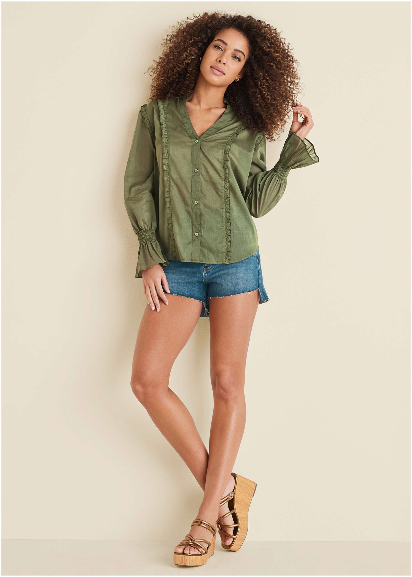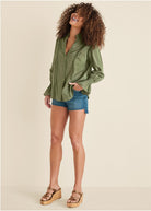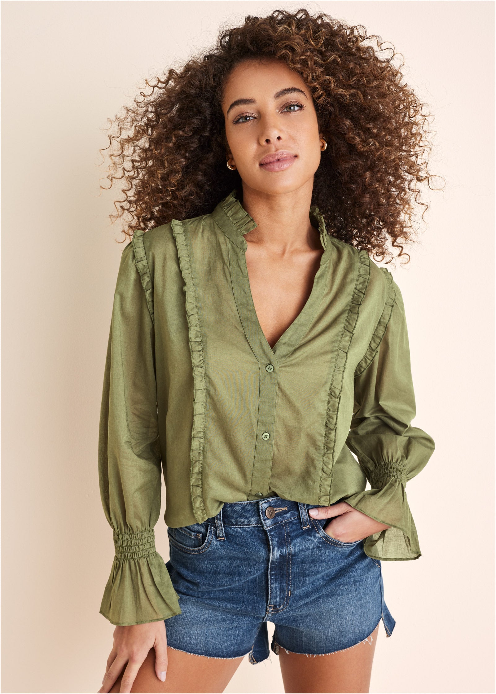 Get ready to fall for this romantic top. From the ruffle trim along the collar and down the front, to the fluted sleeves, there are so many feminine details to love. Done in our ultra-lightweight Whisper Cotton, it has a barely-there sheer look and next-to-nothing feels that makes it a perfect choice for hot weather.