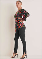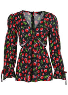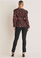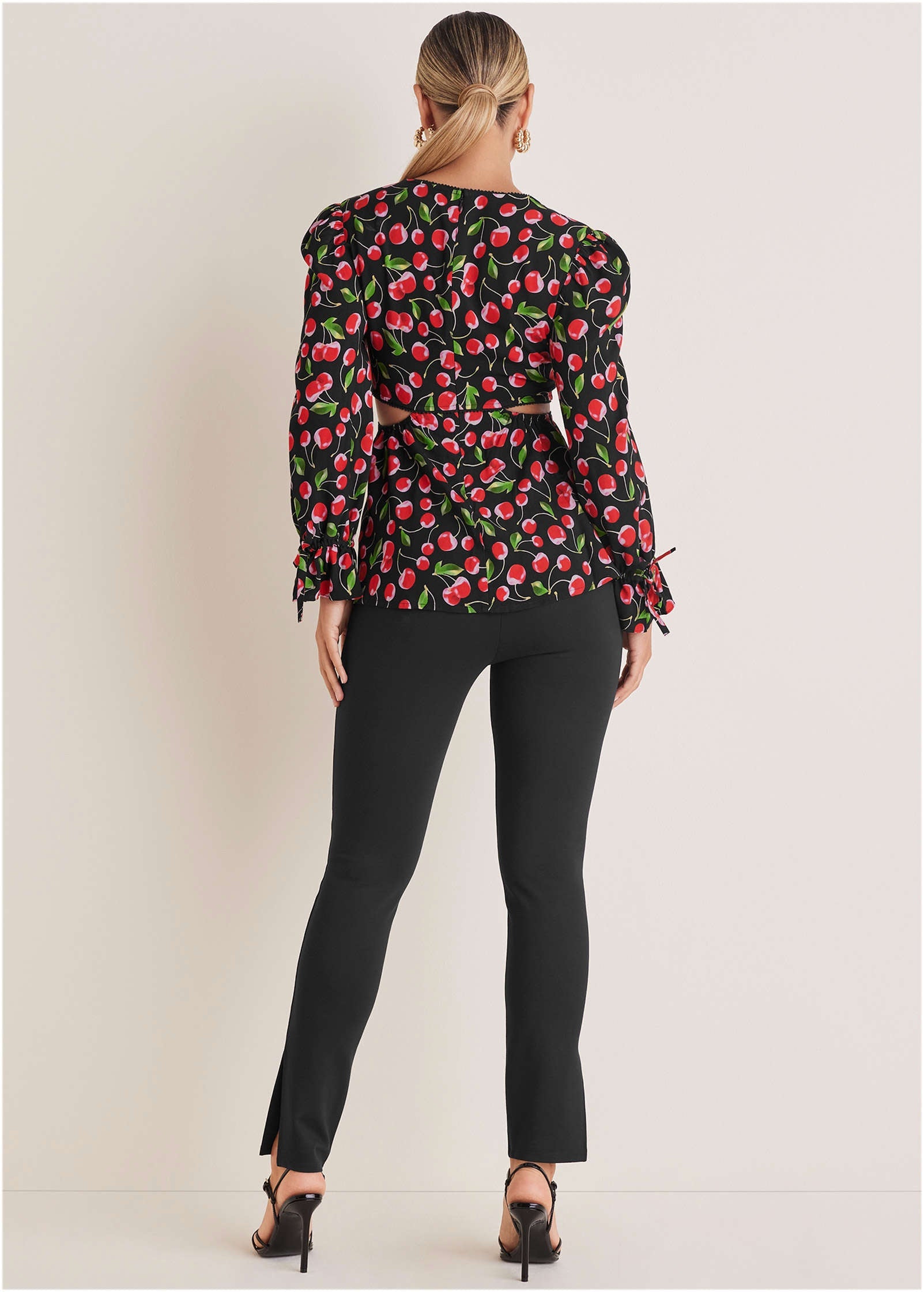 Classic with a little spice—just the way you like it. The Cut-Out Waist Blouse brings the perfect mix of elegance and allure, featuring a sleek V-neckline, subtly puffed long sleeves, and just the right amount of skin-baring cutouts. The timeless silhouette gets a bold update, making it your new go-to for turning heads. Pair it with black pants and strappy heels for a flirty nighttime look that’s perfect for date night (or any night you want to make unforgettable). * Sizes: XS (2), S (4-6), M (8-10), L (12-14), XL (16) * V-neckline: Flattering and effortlessly chic * Cutouts: Just the right amount of sultry for a flirty finish * Long sleeves: A sleek balance to the bold details * Slightly puff sleeves: A touch of drama for extra style points * Date-night ready: Pair with black pants and strappy heels for an effortless night-out look * For printed items, print placement may vary. * Viscose. Imported