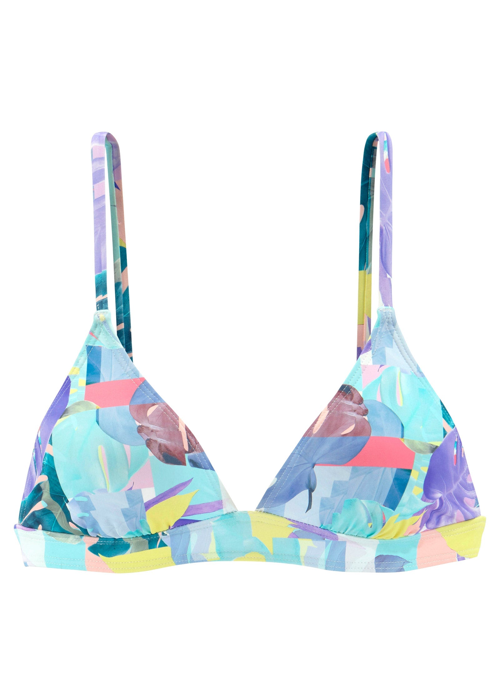 We see color in your future and it's courtesy of this bold bikini top. Mixed pastel shades and an abstract tropical-leaf print add a jolt of vibrant energy to this style. With the sleek look of a classic triangle top, it also features a band under the bust for added support.