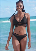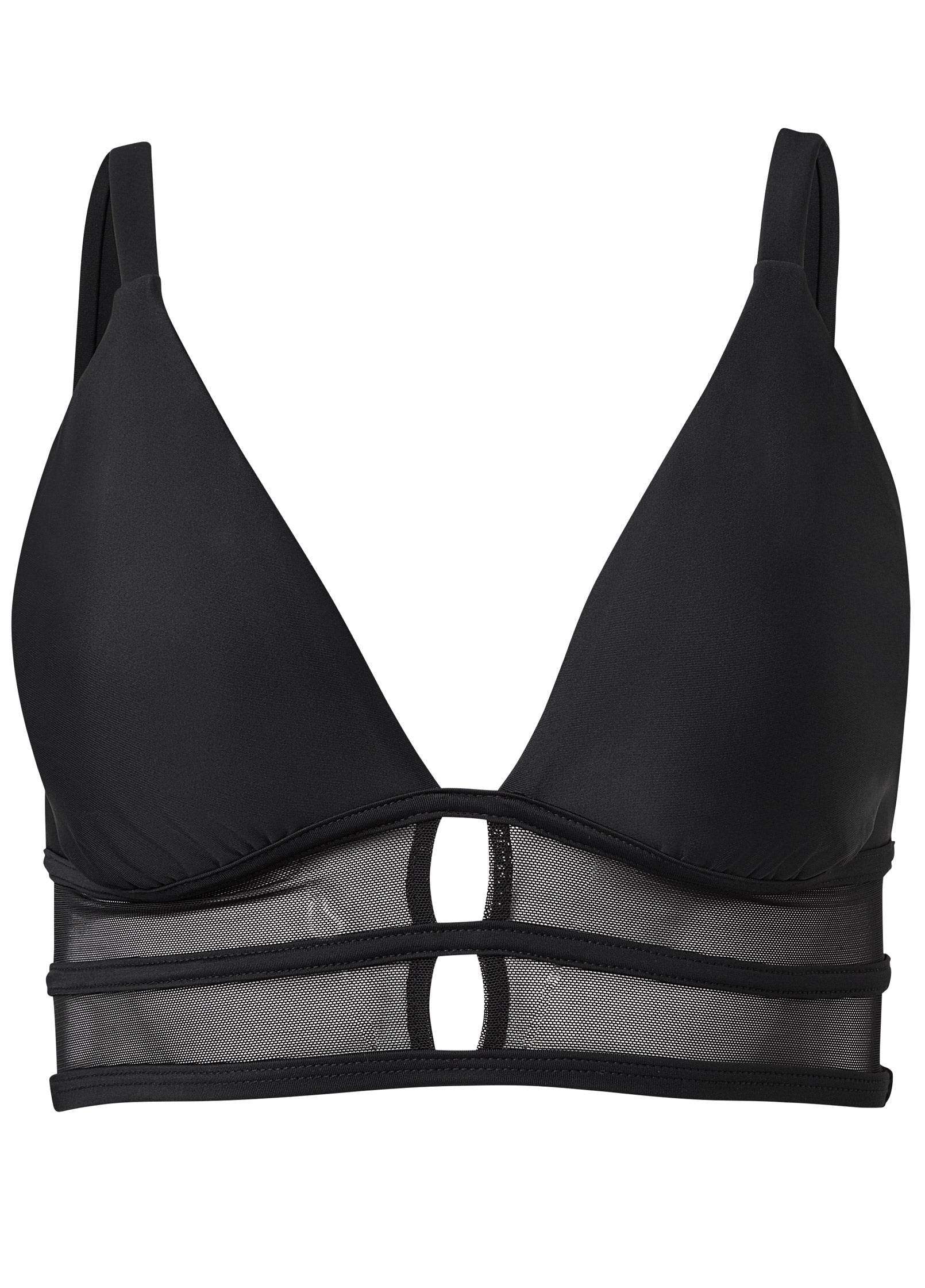 Time to make waves: This Strappy Bikini Top brings a bit of edge to your sunbathing routine with its plunging front and center strap accents. Adjustable shoulder straps work with the full back to provide a comfortable fit that feels made just for you.