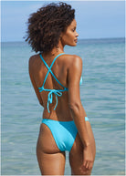 Consider this the classic triangle top 2.0. It has the same timeless shape, but with double strings under the bust and ties that crisscross in back. And that's not all: done in our textured Honeycomb fabric, it's ultra-stretchy and snug, flexing to fit and flatter. Once you feel how soft it is, you won't be able to stop buzzing about it!