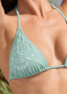 Eye-catching eyelet meets the forever-in-style triangle bikini top, creating an alluring poolside look that won't go out of style any time soon! Adjustable straps behind the neck and back secure the top to your ideal fit and allow you to slide the cups for perfectly-placed coverage.