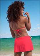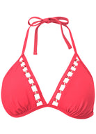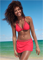 With edgy strappy trim and small ring accents, your classic triangle bikini silhouette gets a fresh update! The halter strap and adjustable back tie give this go-to bikini a custom fit and feel. Make sure this getaway essential is in your suitcase!