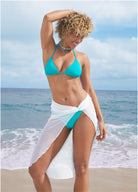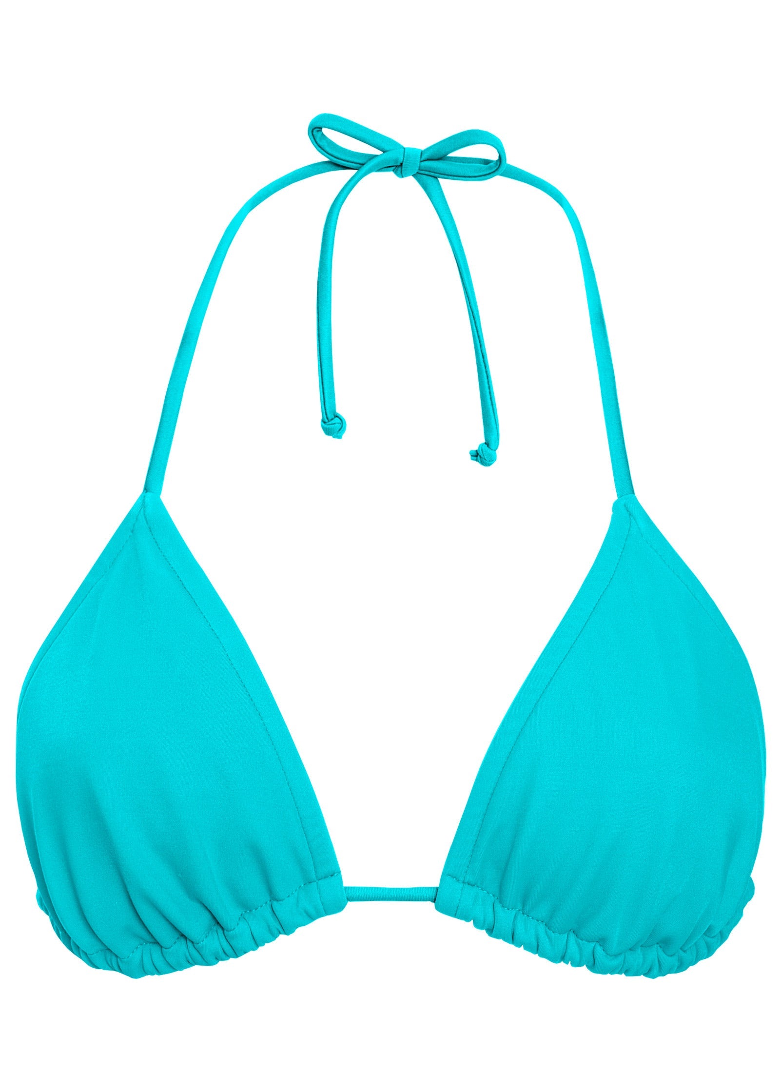 The classic triangle bikini halter with more to offer! The removable foam shaping cups add support as you enjoy a dip in the water. Featuring narrow spaghetti straps that tie behind the neck and back and cups that adjust by sliding along the strap that ties in back, you can create more or less coverage.