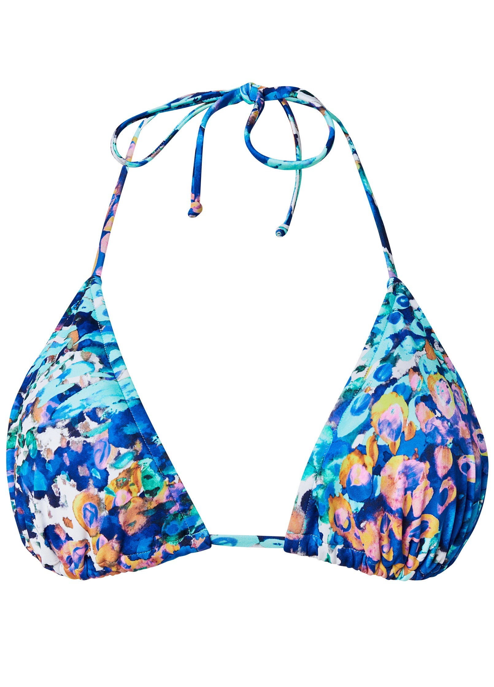 The classic triangle bikini halter with more to offer! The removable foam shaping cups add support as you enjoy a dip in the water. Featuring narrow spaghetti straps that tie behind the neck and back and cups that adjust by sliding along the strap that ties in back, you can create more or less coverage.