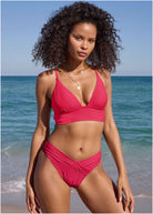 Sleek, strappy, and totally stunning! The Bimini Long Line Bikini Top brings extra support and style with its deep V-neckline, strappy back, and elongating long-line fit. Over-the-shoulder straps keep things secure, while removable padding lets you customize your shape. Whether you're soaking up the sun or taking a dip, this top is made to turn heads.