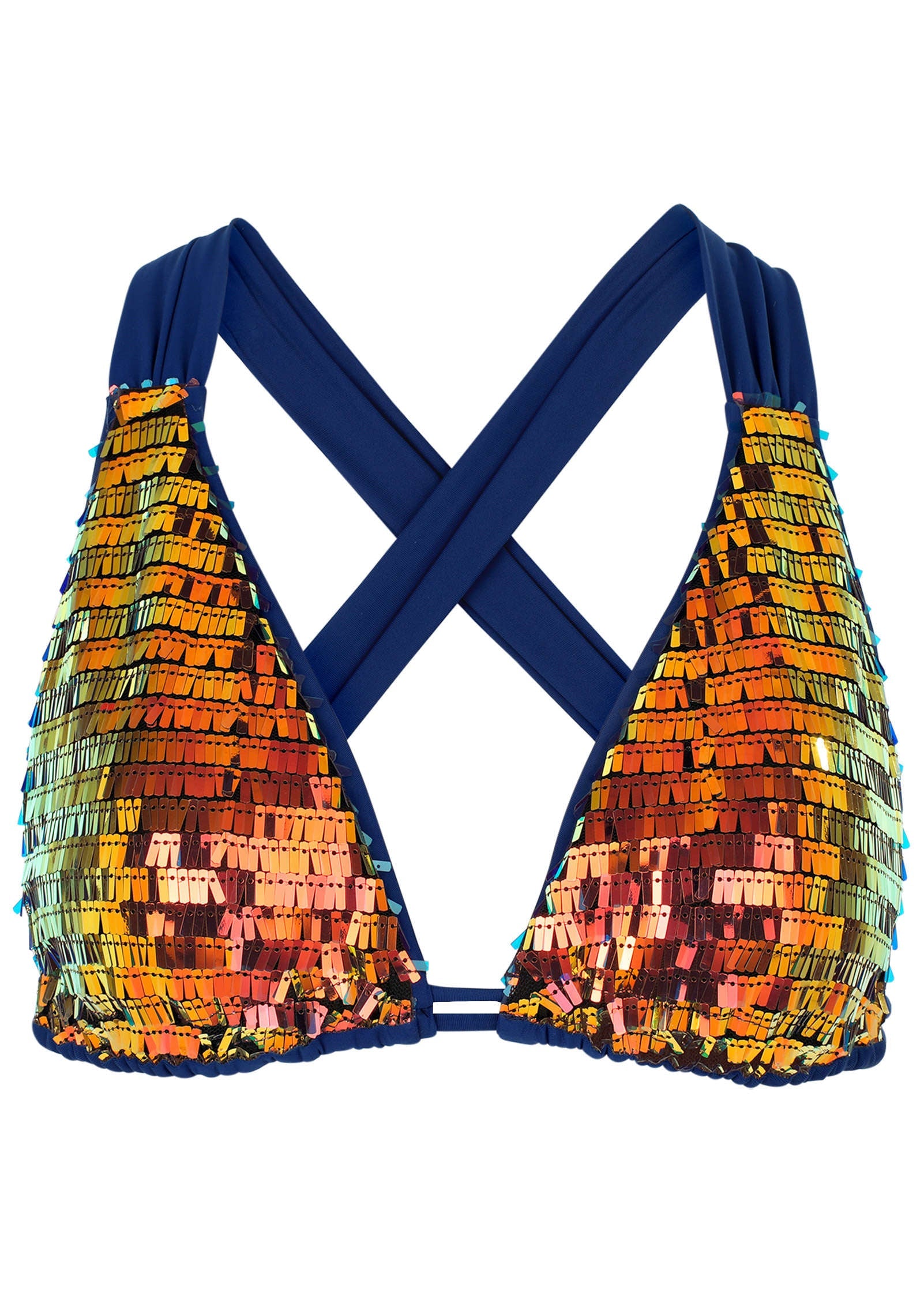 Add a touch of sparkle to your swimwear collection with the Getaway Glitz Triangle Top. Featuring dazzling sequin details and a flattering halter strap, this top provides a chic, eye-catching look. The removable padding allows for customizable support and comfort. Pair it with the Getaway Glitz Fiji or Malibu bottoms for a complete, show-stopping look.