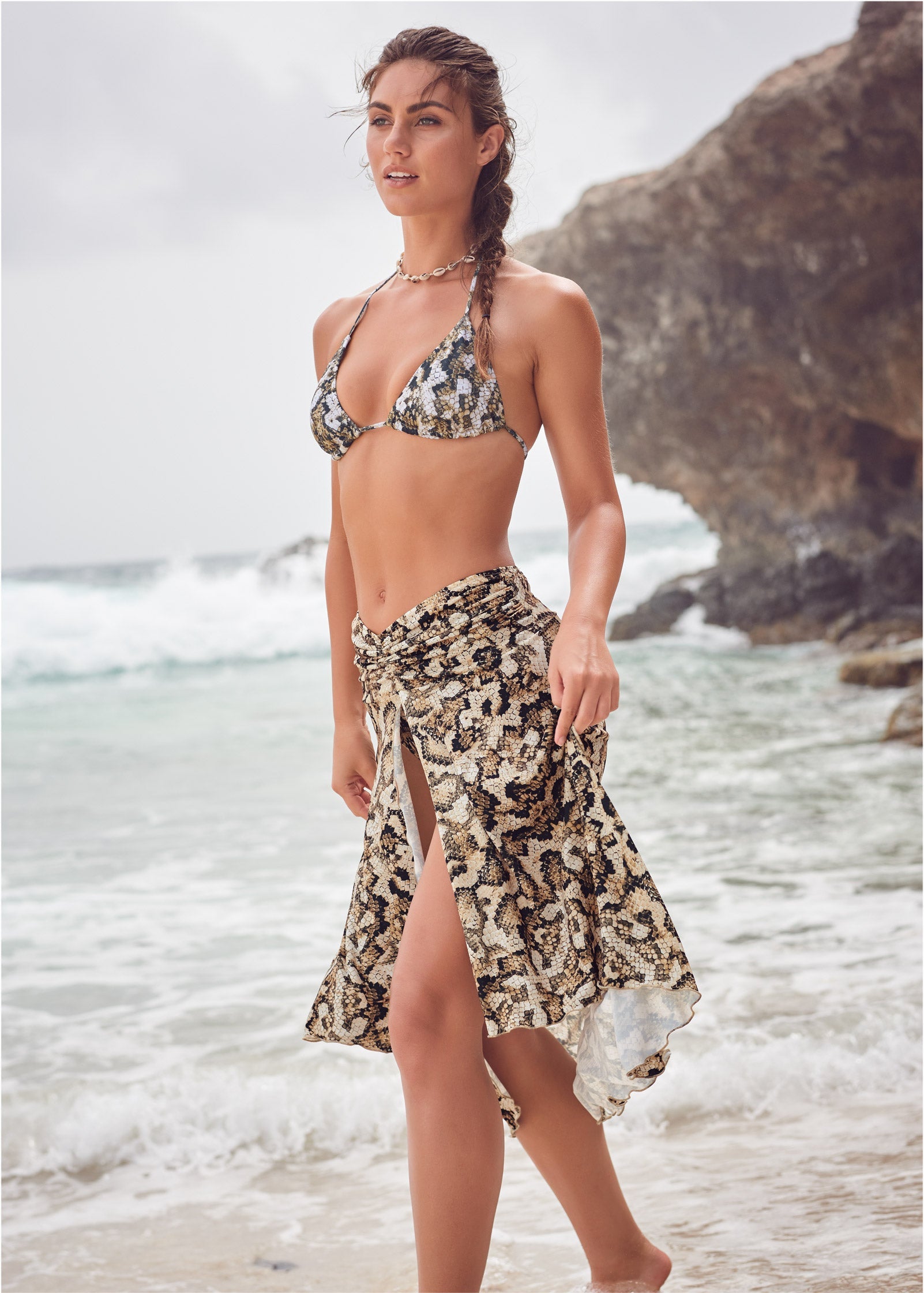 Regardless of whether you choose a string bikini top or a padded push-up triangle top, our VENUS collection features standout designs that make this classic silhouette feel brand new. This season choose bold animal prints, like hot pink leopard or aqua-hued snakeskin. Or try a fun mixed-print triangle top that combines vibrant florals and wild leopard print. If you’re going for a sophisticated look, try trending hardware details like cool metallic grommets and belted straps. Want something more statement-making? Reach for a metallic triangle top or one decked out in sparkling sequins.