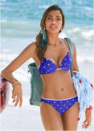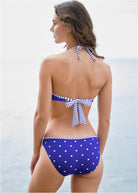 This halter silhouette of this underwire top assures a charmingly classic look! This shape-enhancing top features contrasting trim and string ties with plenty of support. * For printed items; placement may vary * Adjustable halter straps * Back closure * Underwire * Molded cups * By Lascana for VENUS * BCV: Domestic or import of quality nylon/spandex tricot * SWY: Domestic or import of quality recycled poly/spandex tricot
