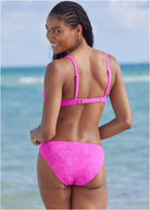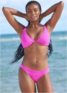 Sunny-day support is yours in this underwire bikini top. Textured detailing covers the molded cups for an extra touch of interest, with structured edges and a V-neck held in place by adjustable shoulder and back straps for a custom fit and feel.