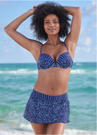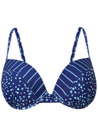 Adjustable shoulder straps work with the underwire on this enhancer bikini top to give you plenty of curve-enhancing lift and support! The deep plunging molded cups amplify your shape with contrasting prints to set this bikini top apart.