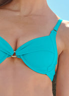 Enhance your natural beauty in this underwire top that gives you effortless lift, shape and support. With side slings along the cups and a metallic ring at the center, you can count on full coverage in a style that makes you feel and look your best. * Runs small. Size up two cup sizes for best fit.