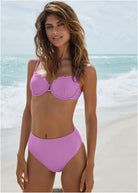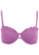 This balconette bikini top is giving mermaid vibes and we're here for it! It's unlined for comfort and has an underwire for plenty of support. Frilly lettuce trim along the top edge of the bra cups is a pretty little detail that makes it feel so special. * Adjustable shoulder straps * Adjustable back slider strap * Unlined cups with underwire support * Lettuce edge at cups * For printed items, placement may vary * Imported of recycled nylon/spandex tricot. See MORE DETAILS.