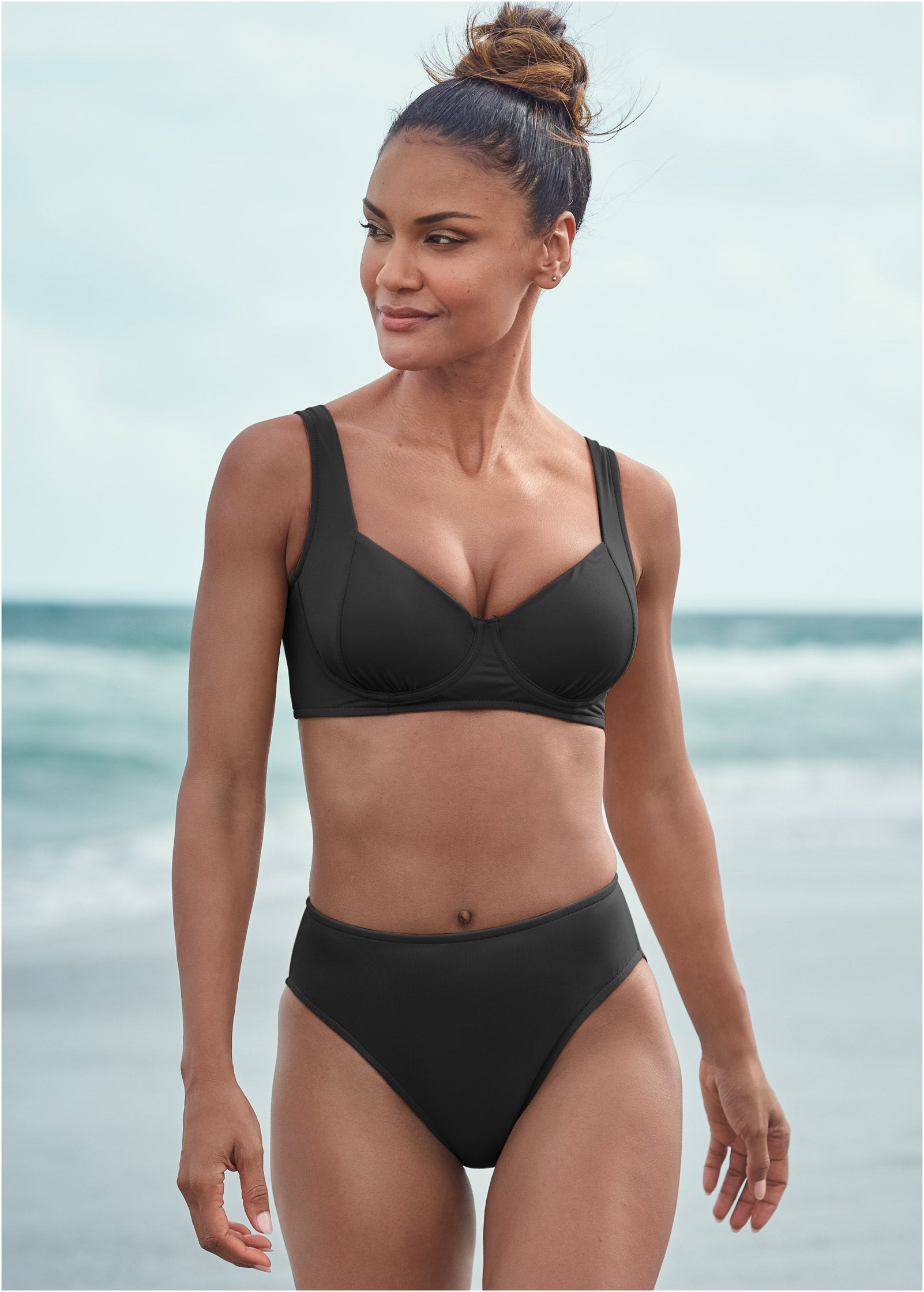 An instant swim staple, our Aphrodite Underwire Top enhances your figure with the support of an underwire and boning. The fully adjustable shoulder and back straps allow for an ideal fit. This style is perfect for days with your toes in the sand, the deep end of the pool or under a shady tree.
