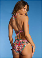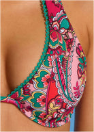 Dive into this classic halter-style bikini top for a timeless beach look. An underwire offers support, while wide straps comfortably tie around the neck to offer extra lift. With no padding, this top is a perfect choice for those who prefer a more natural look.