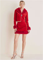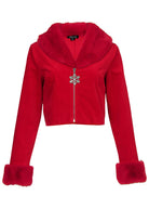 Make your holiday shopping list, check it twice, and make sure this jacket is on it! This velvet stunner is as festive as they come with plush faux-fur trim along the neckline and sleeves, plus a sparkly snowflake zipper pull for a touch of glam. Pair it with the matching mini skirt for the ultimate holiday set, dress it down with jeans or toss it over your party dress for your next seasonal soiree.
