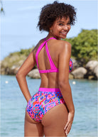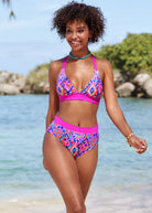 High-waisted with a moderate rear, our volley bottom sits on the waistline with a contrasting-color band that boasts a secure, structured fit and a defined waistline. The higher legline gives a legs-for-days look you'll reach for on every upcoming beach day! * Moderate rear coverage * High waist sits slightly below waistline * Domestic or import of quality nylon/spandex tricot