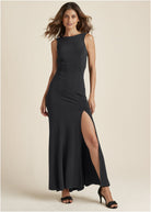 Open Back Slit Maxi Dress - Black