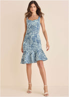 Ruffle Trim Detail Dress - Denim Anglaise Paisley