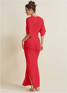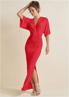 When in doubt, wear this dress. Dinner date? Getaway to the tropics? A wedding? This dress. The sleek, curve-hugging fit and ruched detailing are ultra flattering. Plus, it's made in our Does It All Jersey fabric that's lightweight and drapey with a matte finish. Just like the name says, this fabric truly does it all. Dress it up or down, this dress can be worn anywhere and for anything. * Sizes: XS (2), S (4-6), M (8-10), L (12-14), XL (16) * Maxi length; from shoulder: 53.5" missy, 53.5" plus * V-neckline * Side slit * Unlined * Does It All Jersey (Polyester/elastane. Imported)