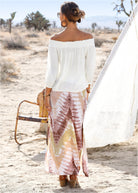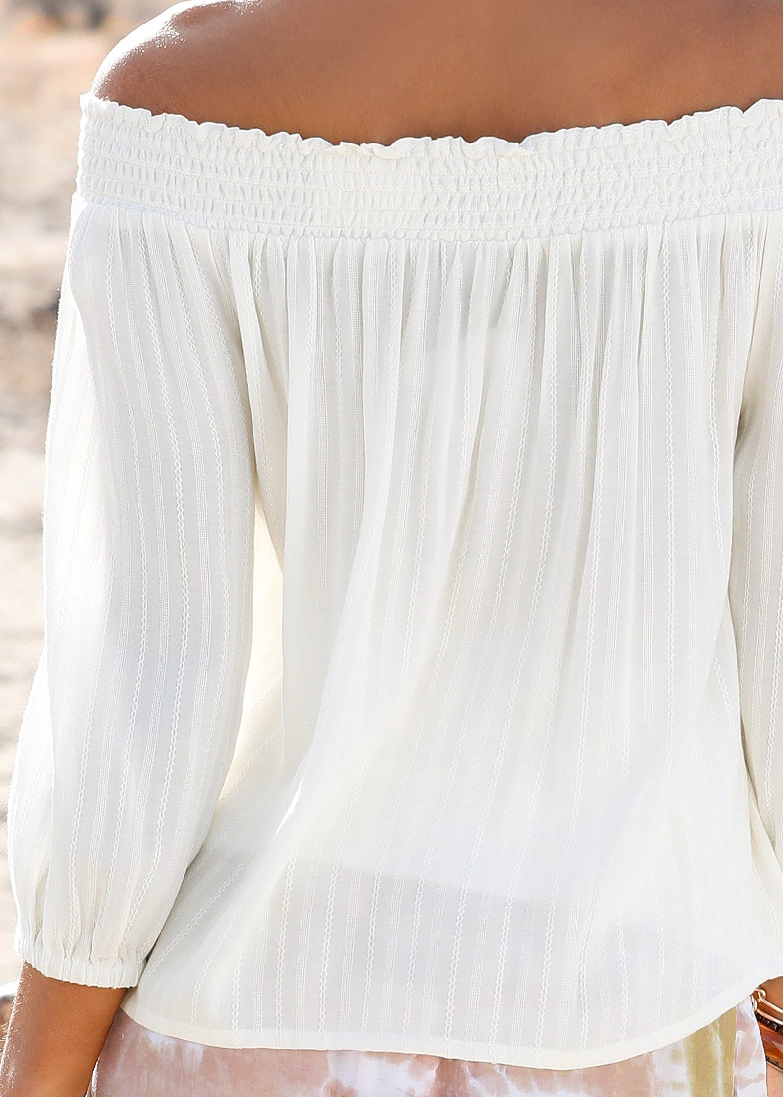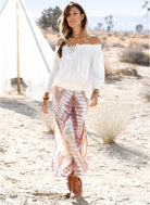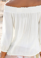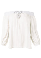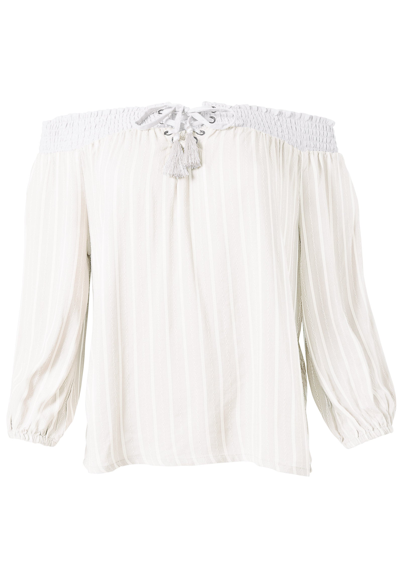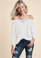 Stay cool in this airy long sleeve top! We're getting major Woodstock vibes from the flouncy balloon sleeves and lace-up neckline, but an off-the-shoulder style keeps this look right in the moment, giving you a piece that can be styled in so many different ways!