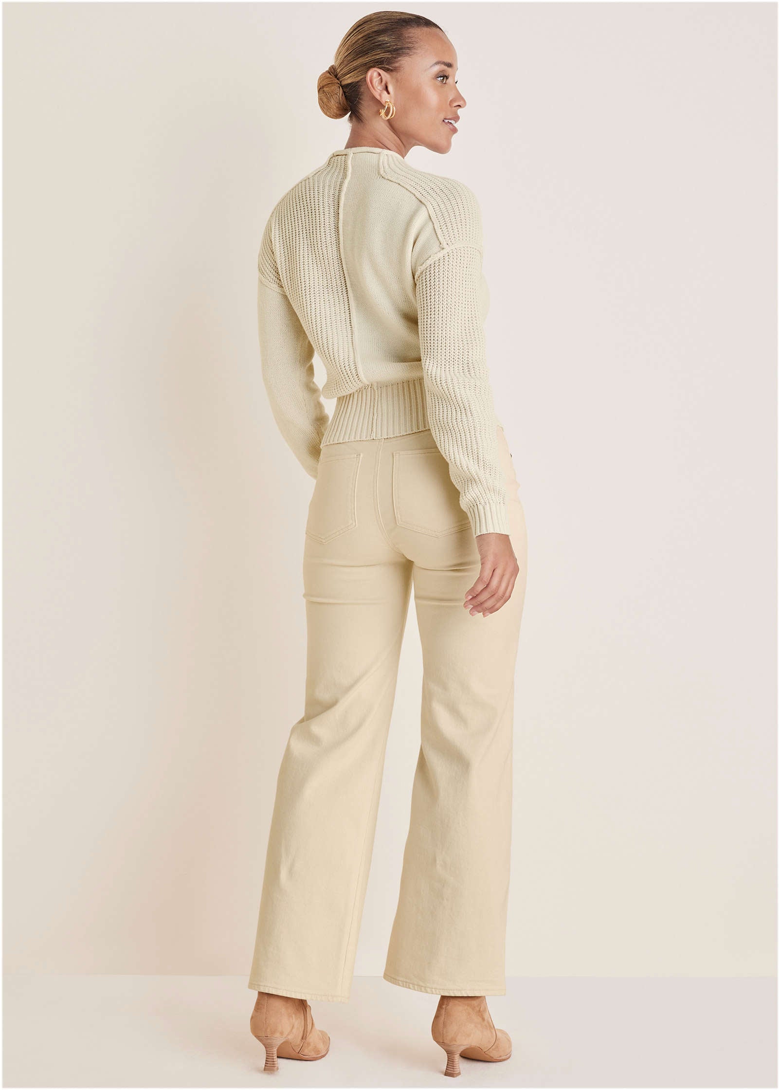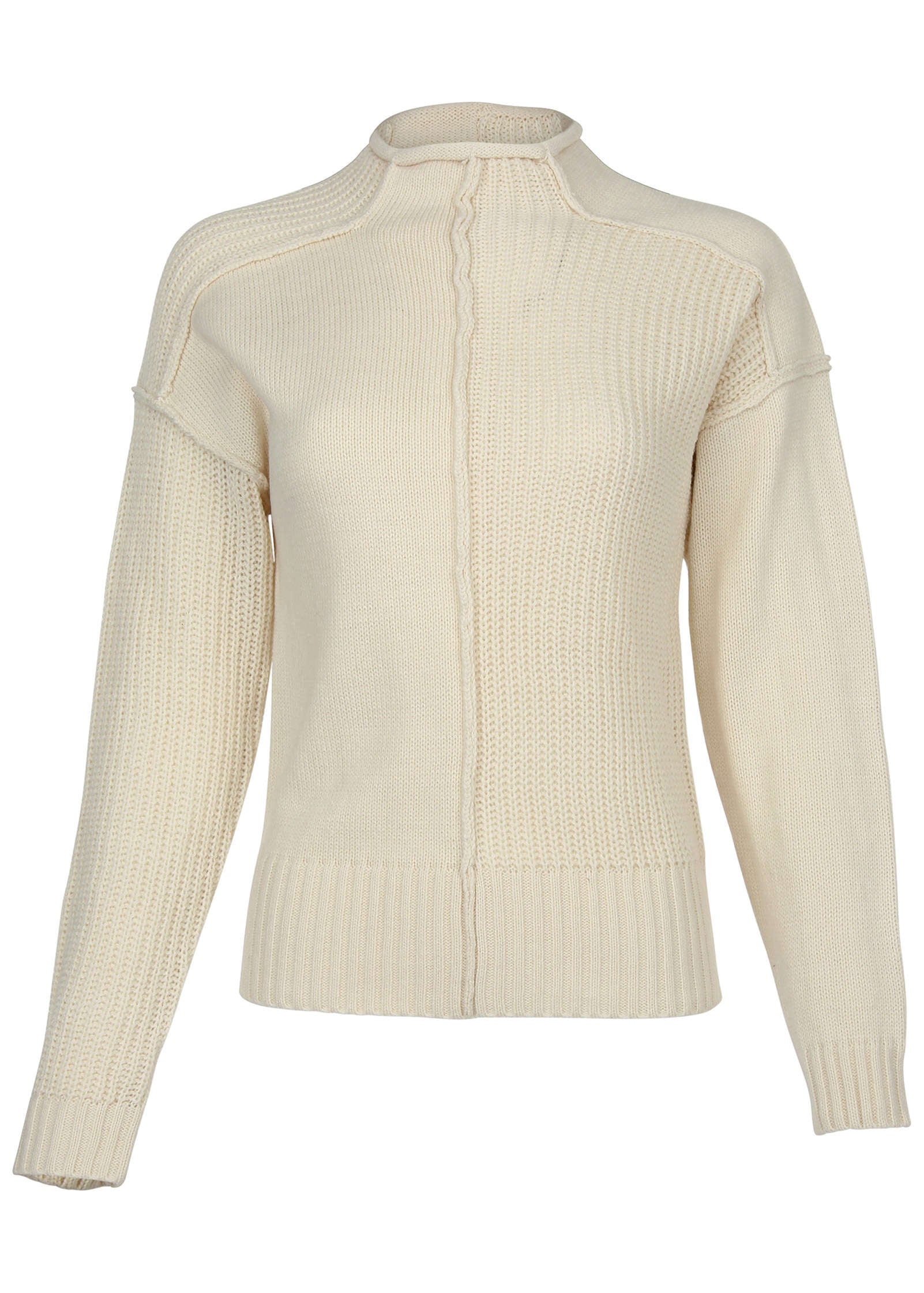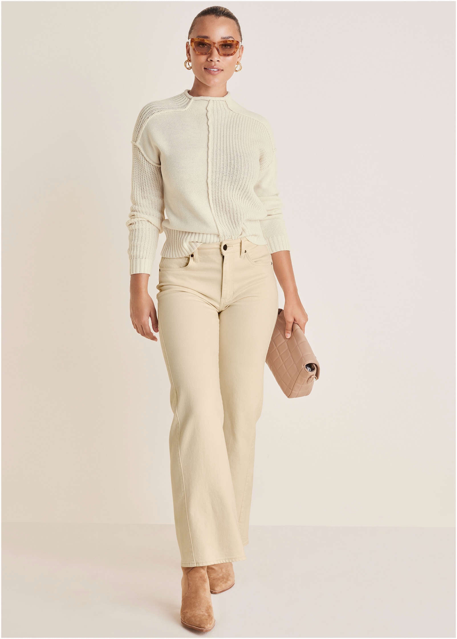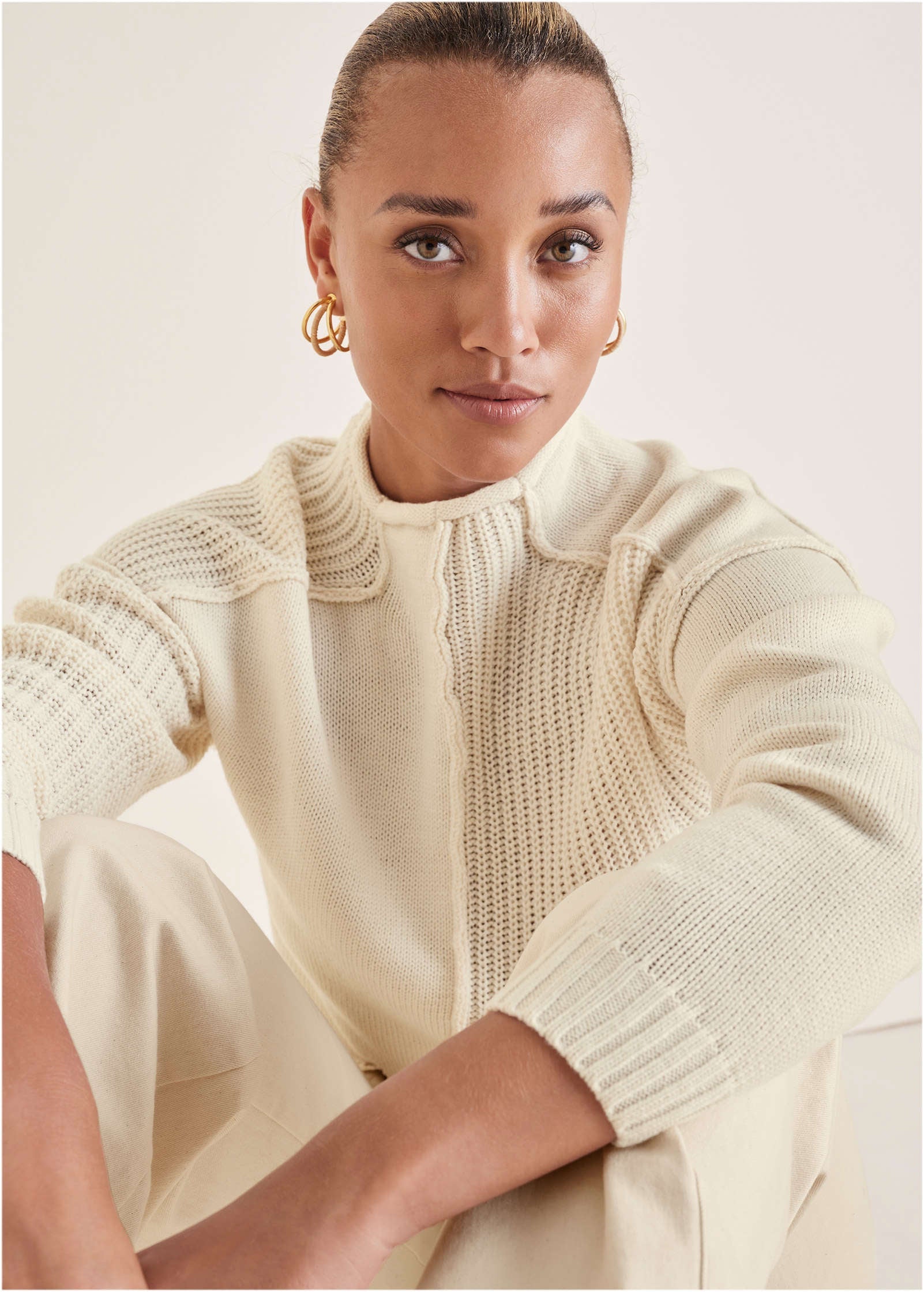 Want in on the quiet luxury aesthetic with an affordable price tag? Here's how: this sophisticated mock-neck knit is simultaneously timeless yet completely eye-catching. Varying knit weights and seam detailing create textured interest that will turn heads. Pair this sweater with our Natural Wash jeans for elegant monochromatic look.