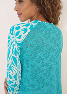 Sheer lace that completely covers the back makes this pajama top feminine and fun! With a classic scoop neck and rounded hem that is longer in the front and back, this long raglan-sleeve top pairs easily with any PJ bottoms for a ready-for-bed look.