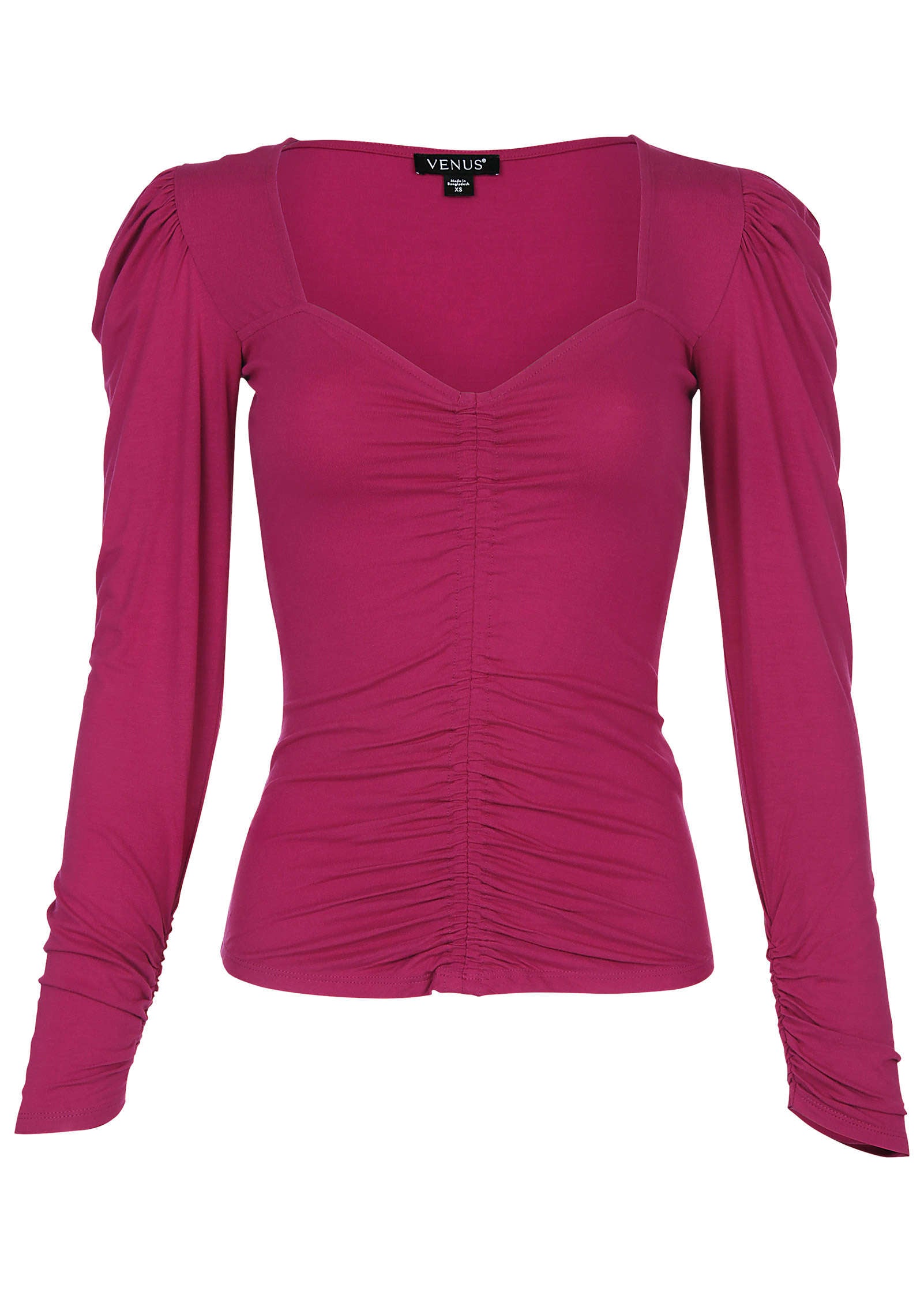 Sweetheart Ruched Long Sleeve Top - Vivacious
