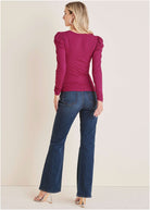 Get ready to turn heads all season long. This top is packed with flirty details, starting with a sweetheart neckline that shows just a bit of skin. Slightly puffed shoulders add some intrigue, while the ruching down the middle downplays your midsection for an ultra-flattering fit. Wear it with jeans and booties during the day, then pair it with a mini and tights for dinner for the ultimate date night look.
