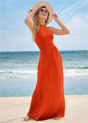 Le tissu extensible confortable fait de ce maxi un incontournable du printemps et de l'été ! Le décolleté haut et le corsage ajusté ajoutent une couverture au devant, se fixant derrière le cou dans un licou, tandis que les épaules nues et le dos ouvert le rendent séduisant et sexy. Les brises de plage n'ont rien sur cette robe facile à confectionner pour les vacances !