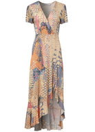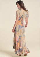 Achieve windswept ease in this breezy maxi defined by its ruffle-edged skirt with a side slit for extra twirl factor. Short flutter sleeves keep things elegant yet flirty, and a deep-V surplice neckline leaves room for your favorite necklace. Beachside brunch, date night—this dress was made for it all.* Sizes: XS (2), S (4-6), M (8-10), L (12-14), XL (16)