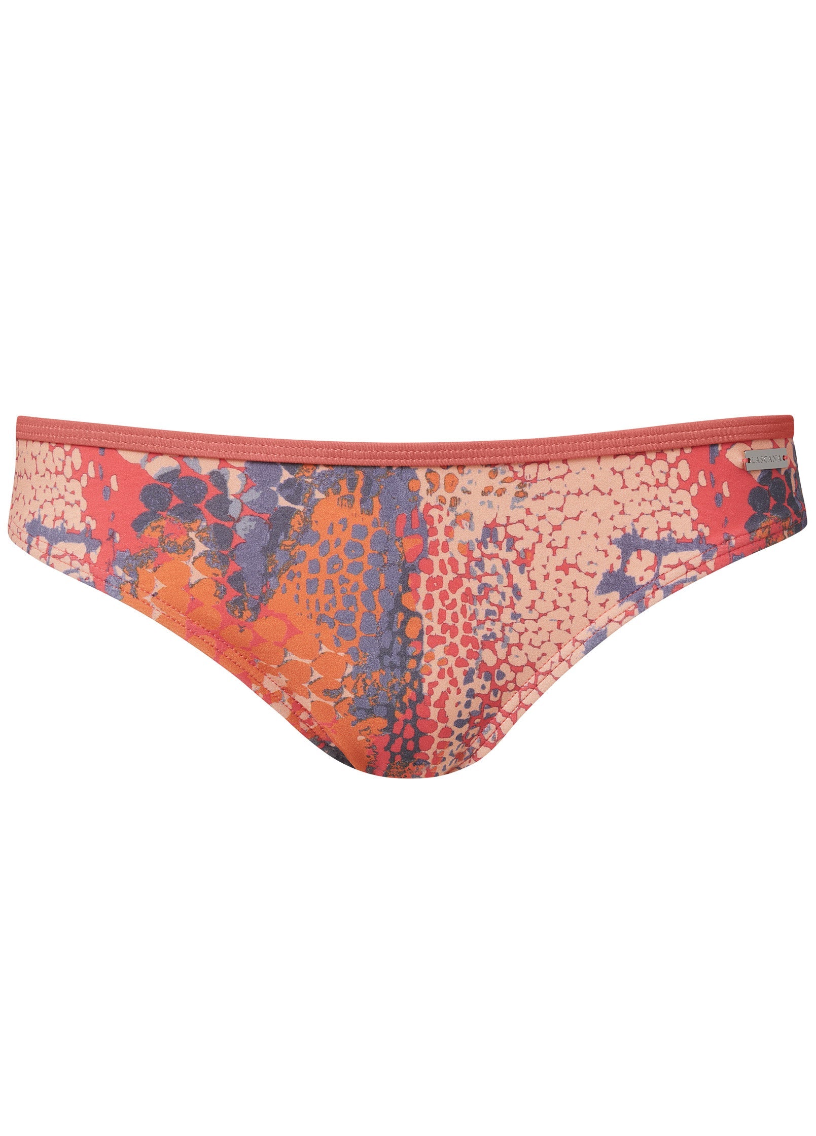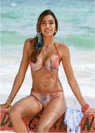 A simply stated classic, this low-rise bikini bottom is worn low and straight across the hips and features moderate rear coverage. This style's pretty polka-dot print is trimmed with classic stripes for playful contrast.