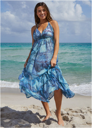 Sheer and light as air, this dress is everything a beach cover-up should be: just enough to throw on post swim while still allowing your suit to peek through. Cinched below the bust then flowing out into a floaty silhouette with a flouncy tier at the hem, you'll look like a total goddess in it. Oh, and we should mention that it packs down to nothing, which means more suitcase space for all your bikinis.