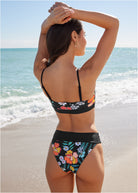 For a sporty take on a beach-day look, this color block swim top has you covered. Adjustable shoulder straps and a band under the bust provide the support you need in this trendy look. As comfortable as it is practical, this top was made for long and active days in the sun.