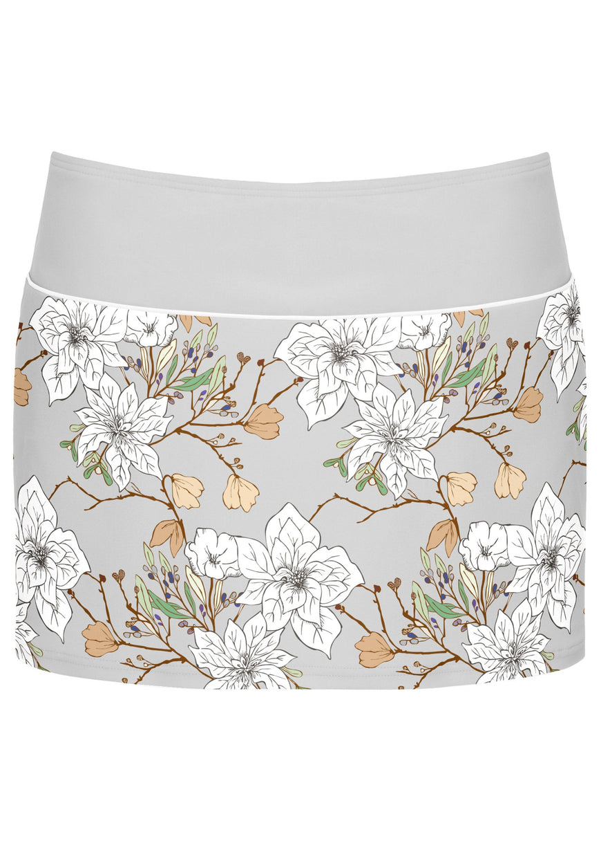 Wide banded waist meets sleek swim skirt shape in this skirted bottom that hits at upper thigh. Moderate bottoms underneath assure modesty as you enjoy family beach days or romantic getaways, while the skirt silhouette sits across the hips and gives feminine appeal to your day-in-the-sun style. * For printed items; placement may vary * Mid-rise banded waist * Moderate rear coverage bottom underneath * Domestic or import of quality poly/spandex tricot