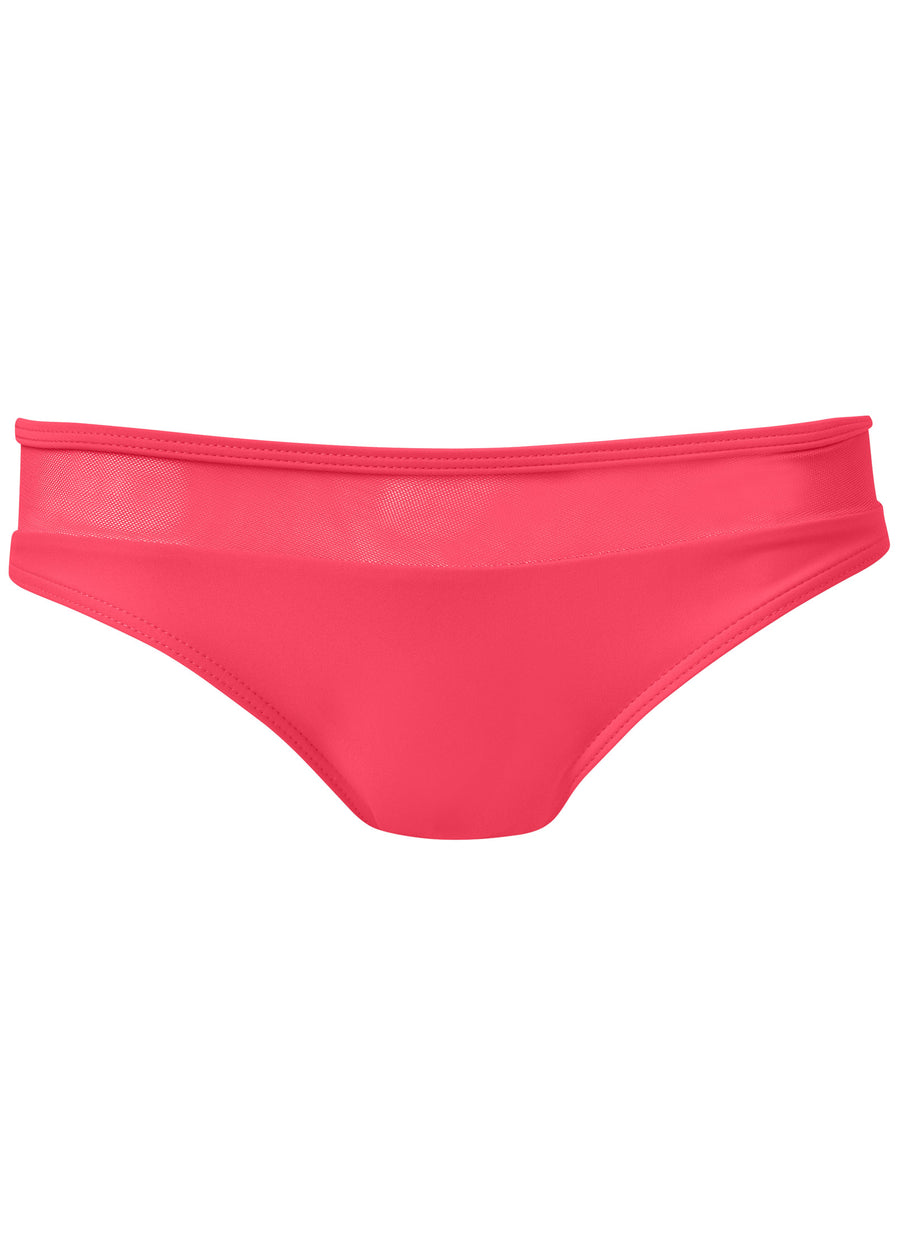 Meet a swim staple with chic appeal! A sheer mesh waistband wraps the hips of this low-rise bottom for a sexy peek-a-boo detail. Offering the coverage you need but with the allure of a moderate rear, this pretty pair goes with you to all your sunny-day activities.