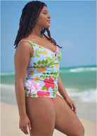 With coverage at the bodice and a V-neckline, this tankini top assures just enough modesty with a revealing twist! Gathers surround the metallic ring at the center front, assuring a figure-flattering silhouette that flares slightly down to hip length. Add matching bottoms and you're set for a day in the sun.