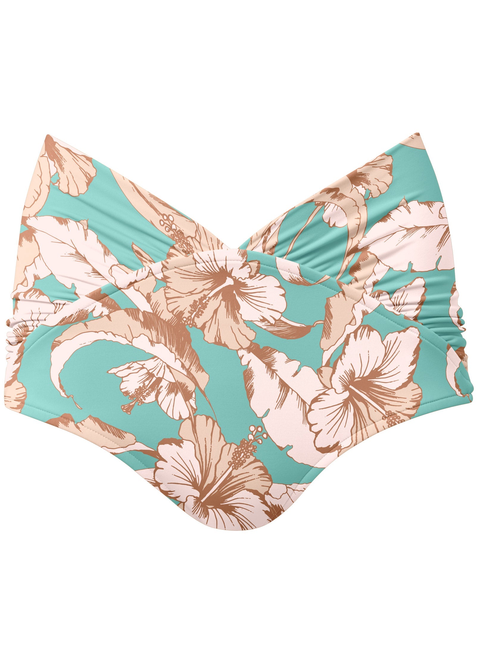 These mid-rise bottoms bring an ultra-flirty edge to your swim favorites, dipping in a V-shape in both the front and back. Ruched sides, thoughtfully placed for visual slimming, flatter and smooth while adding extra coverage to your waist that keeps the look ultra-feminine and sleek.