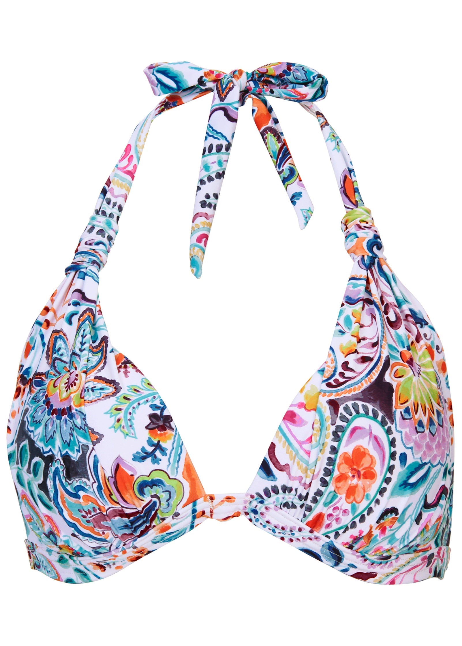 Our Goddess top has been a best seller for over ten years and is still going strong as a fan favorite. Why? It gives beach days a serious boost! Molded cups with push-up padding offer extra oomph—more than any of our other bikini tops.