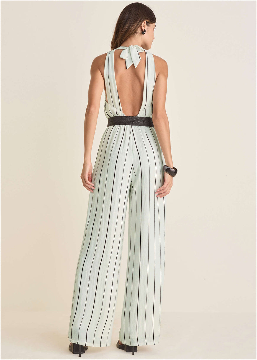 Striped Belted Jumpsuit - Black & White